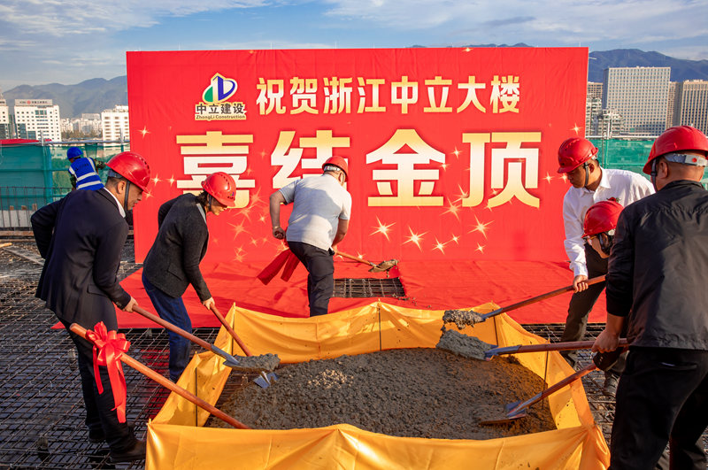 11月17日上午,秋高氣爽、風(fēng)和日麗,在一派喜慶熱烈的氛圍中,浙江中立建設(shè)有限公司自主建設(shè)的中立大樓喜結(jié)金頂。