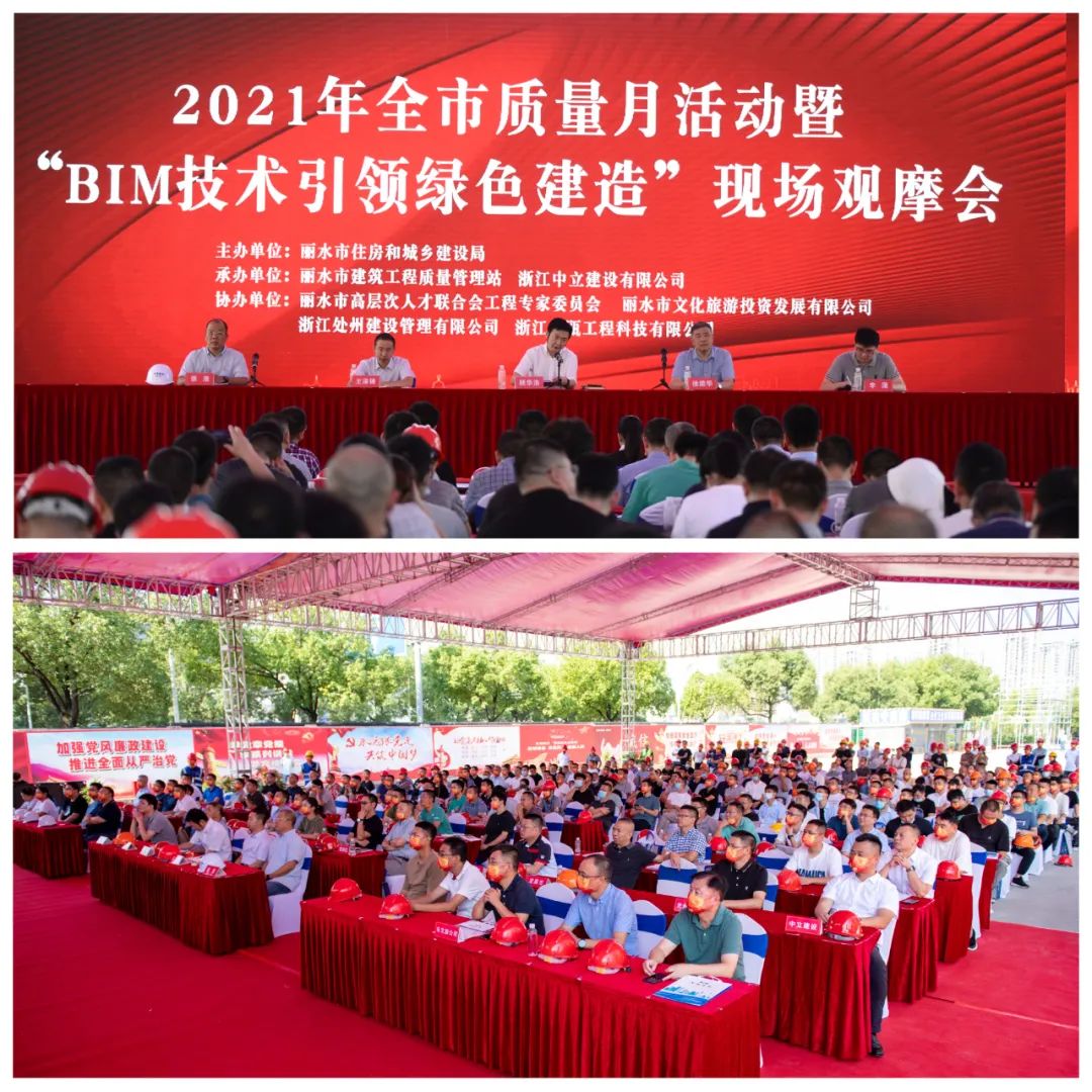 9月26日,2021年麗水市“質(zhì)量月”活動暨“BIM技術(shù)引領(lǐng)綠色建造”現(xiàn)場觀摩會在中立建設(shè)承建的麗水市水東綜合客運(yùn)樞紐項(xiàng)目召開。該項(xiàng)目建筑面積25.8萬平方米,是麗水市高鐵新城重要組成,其雙子塔造型形成一道靚麗的城市景觀天際線。建成后,將串聯(lián)起客運(yùn)、旅游服務(wù)、商業(yè)、酒店等各個功能,對于麗水市充分發(fā)揮高鐵的核心交通作用具有重要意義。
