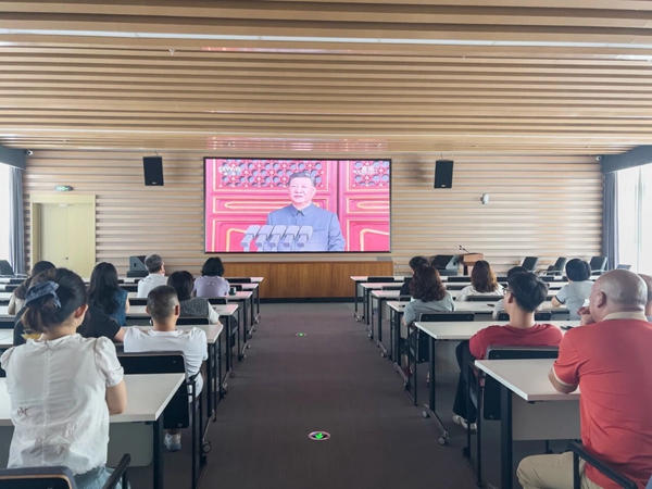 上午9時,全體員工聚精會神地觀看直播畫面,不時發(fā)出陣陣贊嘆。當(dāng)國旗護衛(wèi)隊邁著鏗鏘有力的步伐走向升旗區(qū),當(dāng)雄壯的《義勇軍進行曲》響徹天安門廣場,觀看現(xiàn)場的員工們自發(fā)起身,與現(xiàn)場同步高唱國歌,表達(dá)對祖國的深切熱愛和崇高敬意。